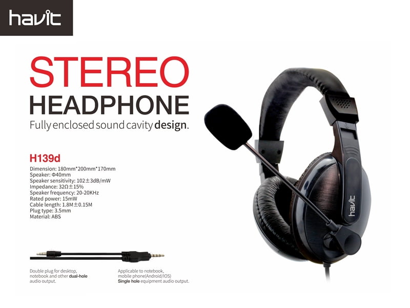 Havit HV-139D 3.5mm Stereo Headphone Black (Double Port /Single Port)